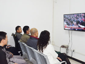 大會主席團常務(wù)委員會成員在主席臺前排就座。>>